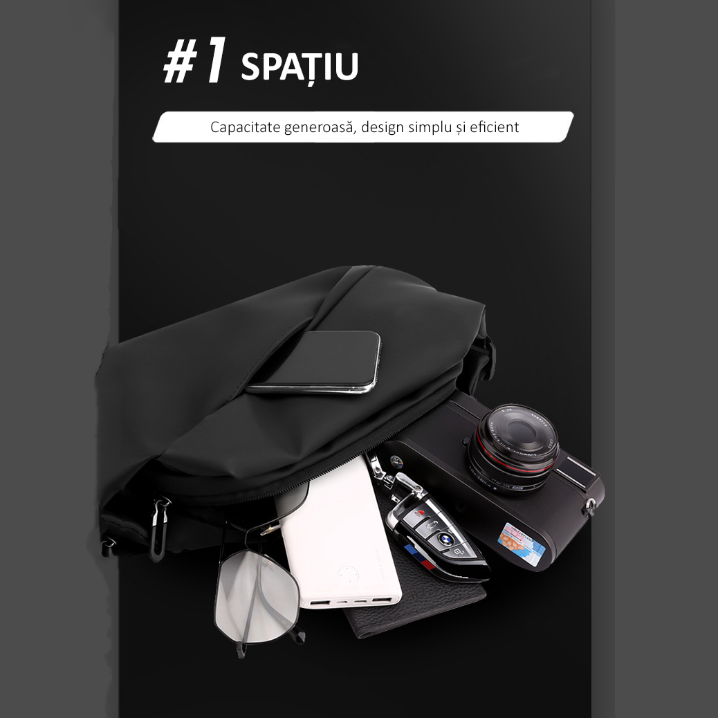 Descriere Generala: Descopera borseta perfecta pentru toate nevoile tale zilnice! Cu un design minimalist, dar functional, aceasta geanta de umar unisex este partenerul ideal pentru orice activitate – de la plimbari urbane la calatorii spontane.