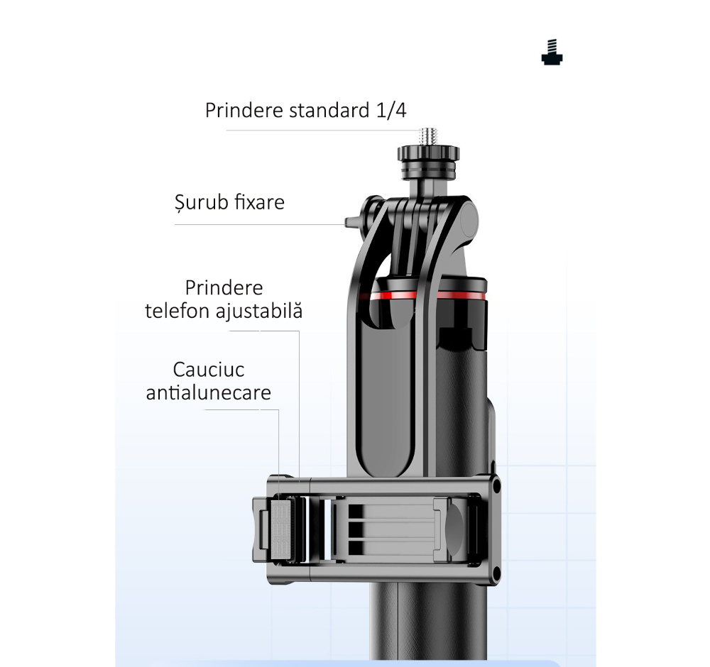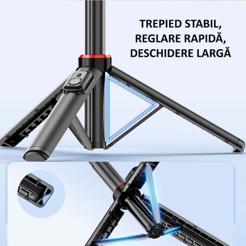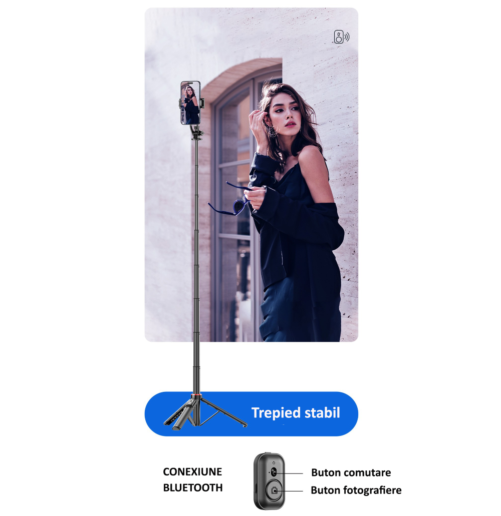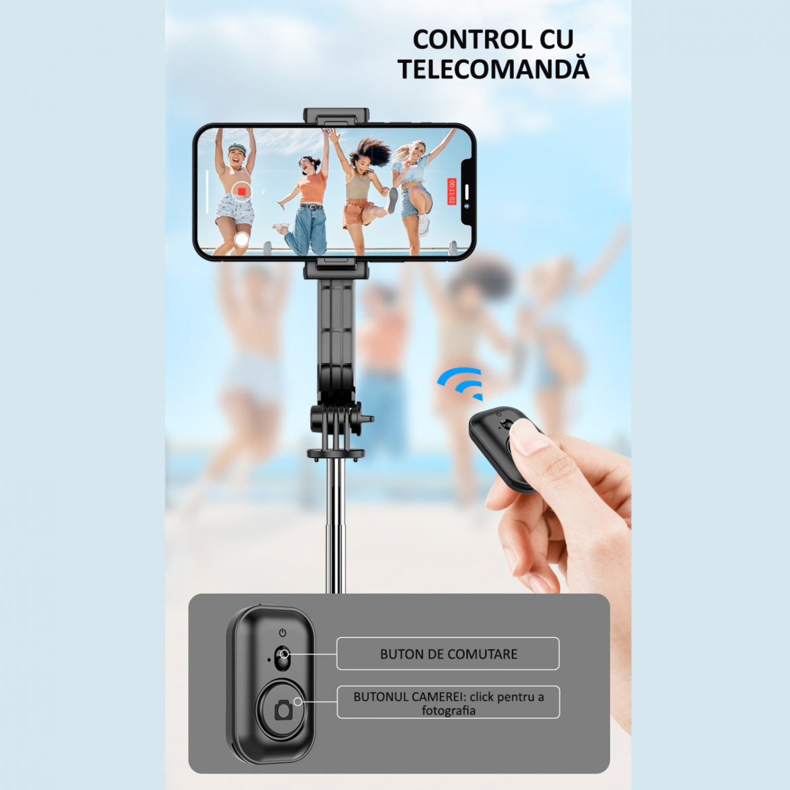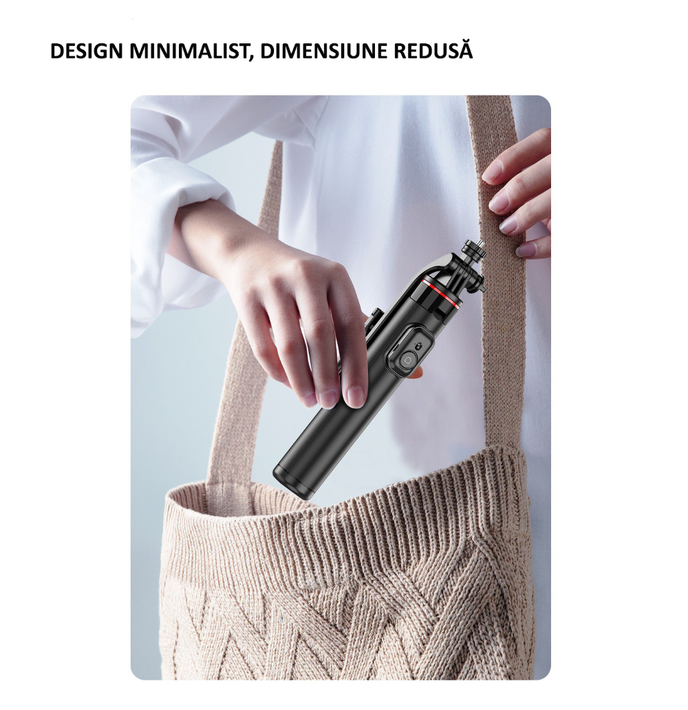 Acest Selfie Stick 3-în-1 este companionul ideal pentru pasionații de fotografie și conținut digital. Compact și ușor, cu o lungime minimă de doar 23 cm, se strecoară ușor în orice geantă sau buzunar, fiind perfect pentru călătorii.