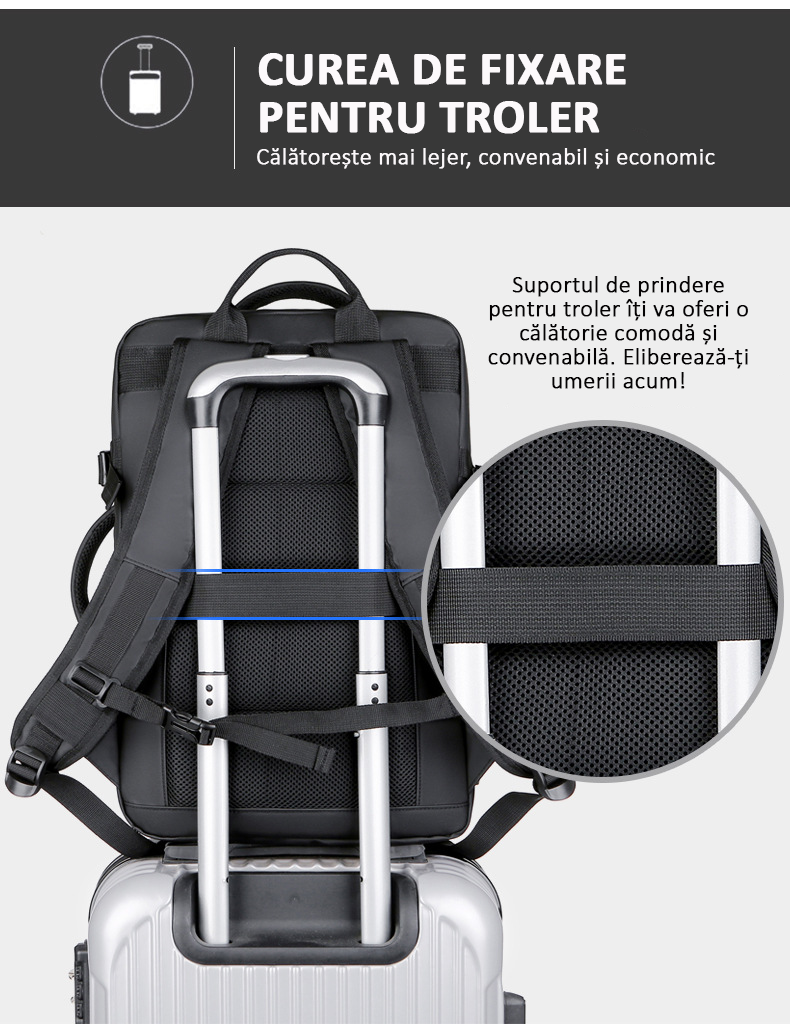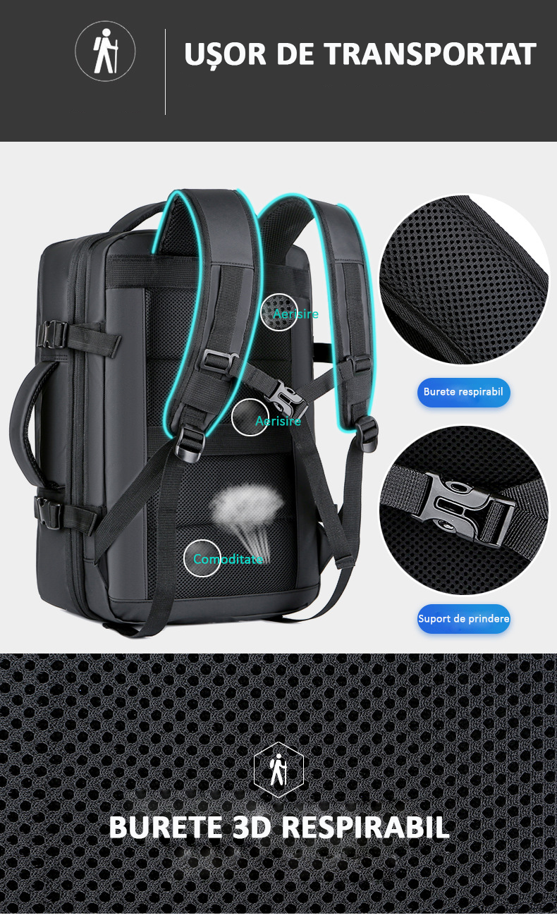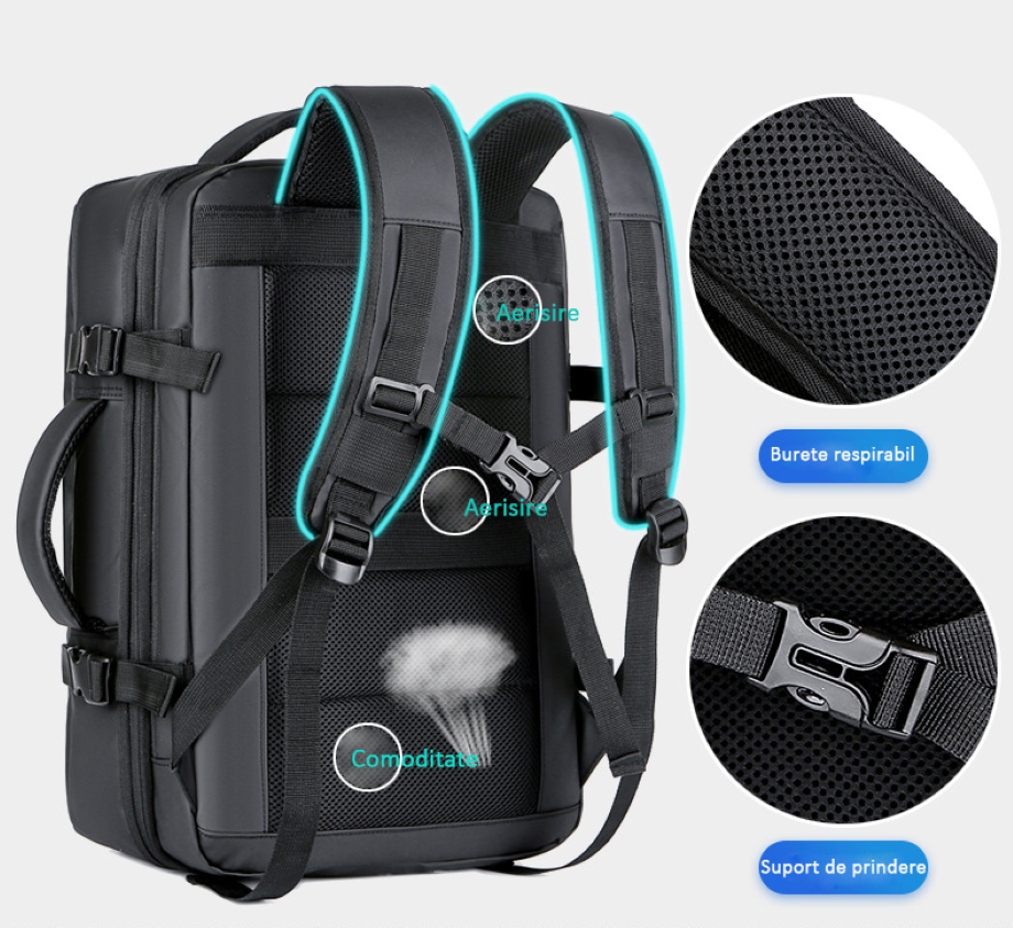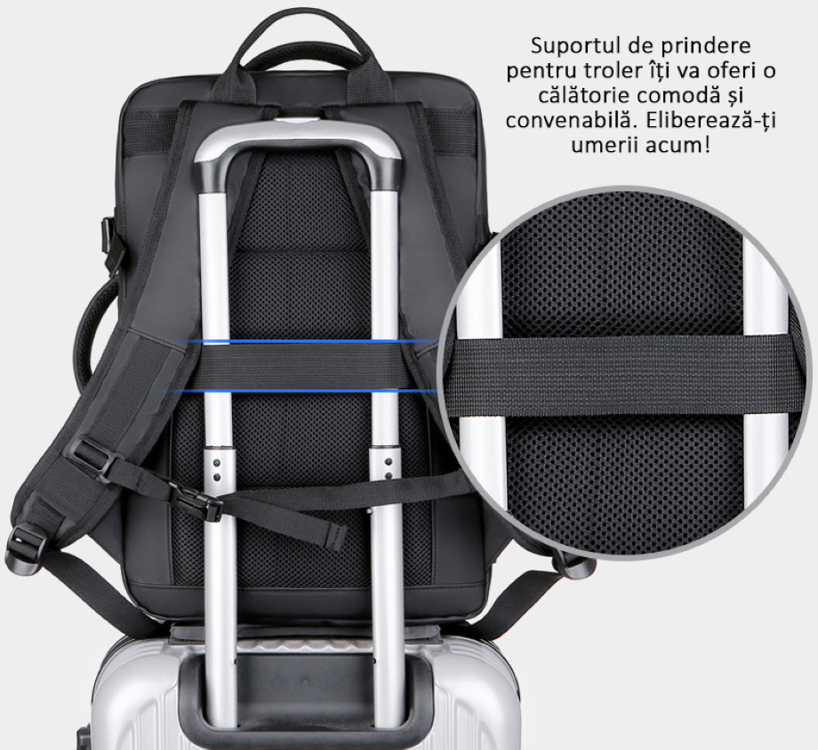 Acest rucsac de calatorie reprezinta o alegere excelenta pentru calatorii de afaceri, calatorii scurte sau aventuri mai lungi ✈️. Cu o combinatie perfecta de functionalitate, durabilitate si stil, acesta este partenerul ideal pentru orice calatorie.
