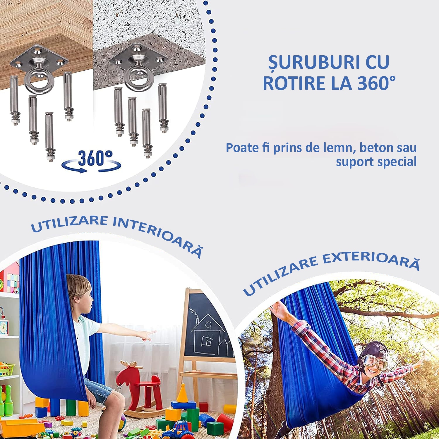 Descopera beneficiile hamacului elastic terapeutic pentru copii! Conceput pentru a consolida muschii, stimula coordonarea si oferi momente distractive, acest hamac rezistent la suprasolicitare este ideal pentru copiii cu diverse nevoi. Hamacul este potrivit pentru interior si exterior, fiind usor de instalat si oferind siguranta maxima pentru copiii aventurosi!