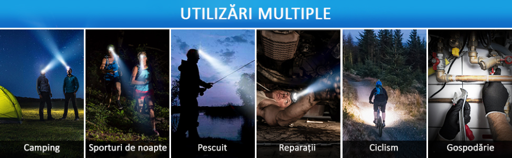 Lanterna frontala de cap cu LED - Lumina puternica intr-un design compact