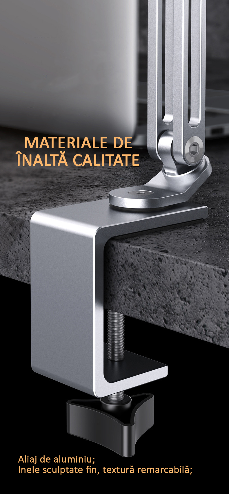 Suportul de tableta din aluminiu este un accesoriu esential pentru utilizatorii care cauta un echilibru perfect intre functionalitate, durabilitate si design modern.