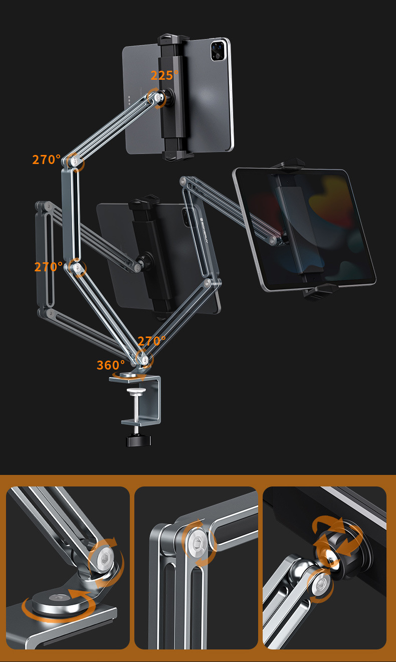 Combinatia de functionalitate si materiale de calitate superioara face din acest suport de tableta din aluminiu alegerea perfecta pentru cei care doresc un produs durabil si flexibil. Fie ca este vorba de utilizare profesionala sau personala, acest suport va raspunde cu siguranta tuturor nevoilor tale.